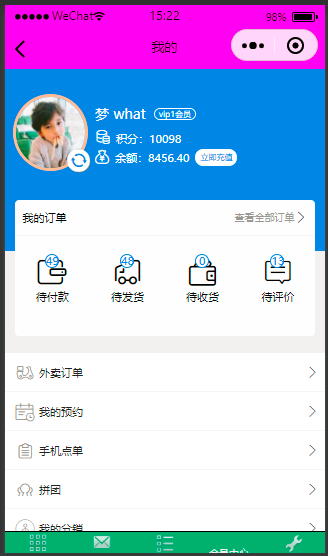 注意:仅在手机微信浏览器使用中分享和转发才能获取积分,且需要绑定公众号,小程序不支持分享获取积分)