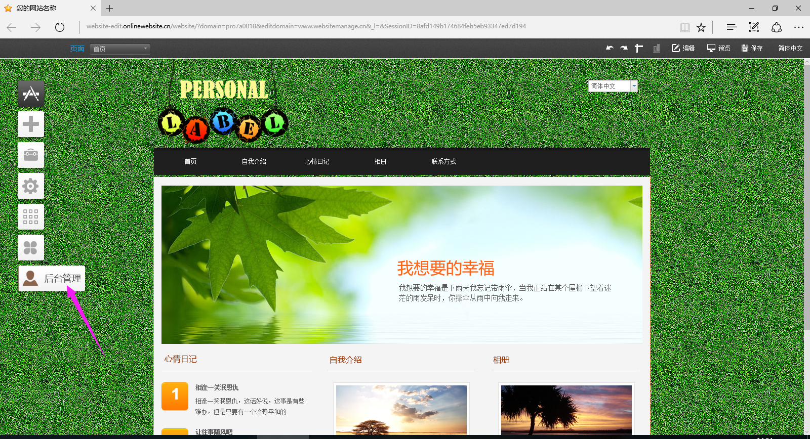 1.进入后台管理: